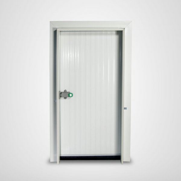 Menteşeli Soğuk Oda Kapısı: Kapı iki sac arasına 40-42 kg/m³ dansite poliüretan dolgulu yalıtım malzemesi ile panel kalınlıklarına göre üretilmiştir. Panel kasa ve özel alüminyum kasa olarak iki tip kapı kasası üretimi mevcuttur. Panele uyumlu ve isteğe bağlı olarak polyester boyalı, pvc, crni (304 kalite paslanmaz) sac seçenekleri mevcut şekilde kapı yüzeyi üretimi yapılmaktadır. Kapının kalınlığı normal soğuk depolarda 80-100 mm, donmuş muhafaza depolarında 120 mm ve şok odalarında ise 150 mm’ dir. Kapı kilitleri uluslar arası standartlara uygun üretilmiş olup, kilitli iken içeriden açılabilen güvenlik mekanizmasına sahiptir. Menteşeler yükselen ve ayarlanabilen tip olup, kapı açıldıkça yükselerek zeminle sürtünme oranı azalmaktadır. Donmuş muhafaza oda kapılarının kasasında gerektiğinde çok kolay değişen rezistans mevcuttur. Standart ölçülerin yanında isteğe bağlı olarak özel ölçülerde üretim yapılabilmektedir. 60, 80, 100, 120, 150, 200 mm kalınlık seçenekleri mevcuttur. 0,50 mm kalınlık sabit kalarak standart üretimde RAL9002 boyalı sac kullanılmaktadır. Projeye göre PVC, 304 KALİTE paslanmaz kullanılmaktadır. Renkli sac seçenekleri bulunmaktadır.